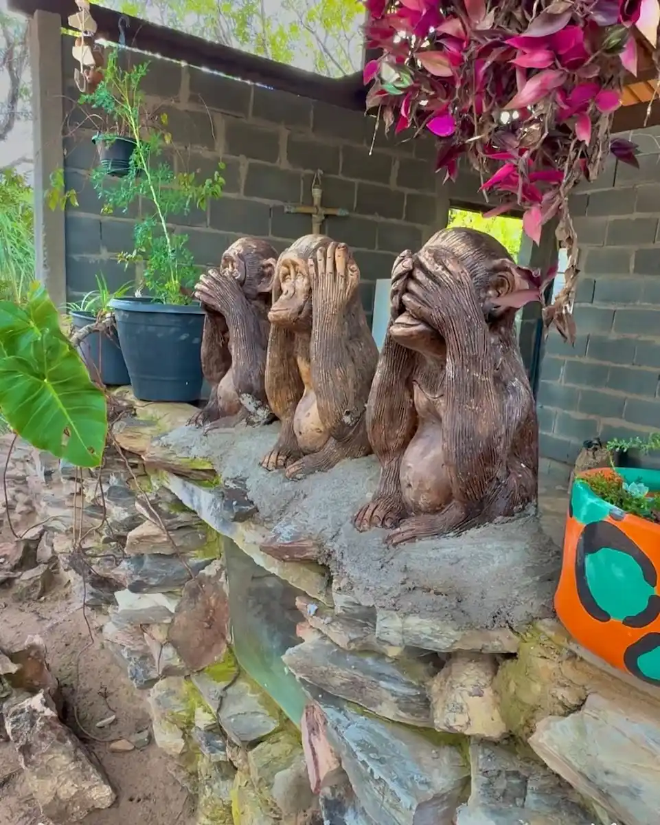 Mais adiante, com mais alguns minutos de caminhada, a Cachoeira Macaquinhos (antiga Cachoeira da Caverna), a principal atração do complexo e tida por muitos como uma das mais bonitas da Chapada dos Veadeiros. Com 65 metros de queda, um poço largo e profundo, ladeado por um paredão de pedra com uma fenda em forma de boca de caverna.