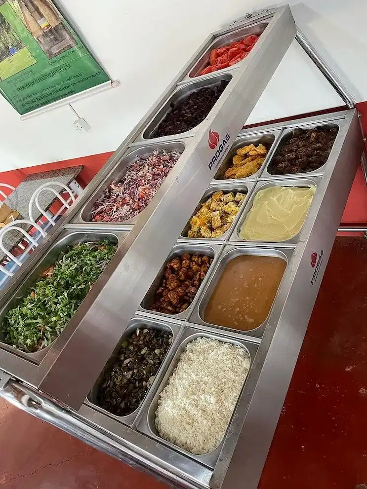 ​Entre as 10h30 e 14h00, também servem almoço tipo buffet. O cardápio varia, mas sempre tem o básico para uma boa refeição.